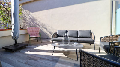 But the highlight of this holiday home is the wonderful furnished terrace. As you step out, you will be greeted by a breathtaking view of the bustling heart of Desenzano del Garda. Here, among lush plants and comfortable outdoor furniture, you can enjoy moments of pure relaxation and contemplation, admiring the colors of the sunset or sipping a good glass of wine under the stars.